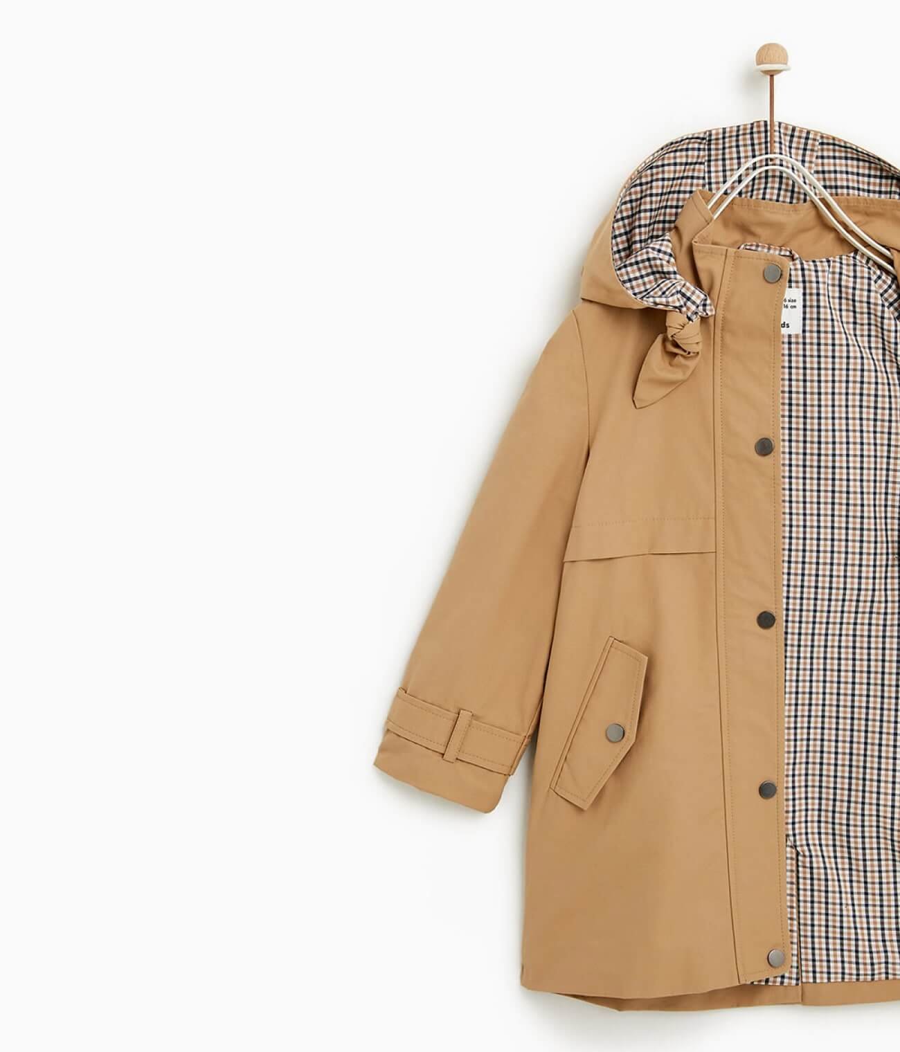 - Hood: Attached hood with stylish check lining